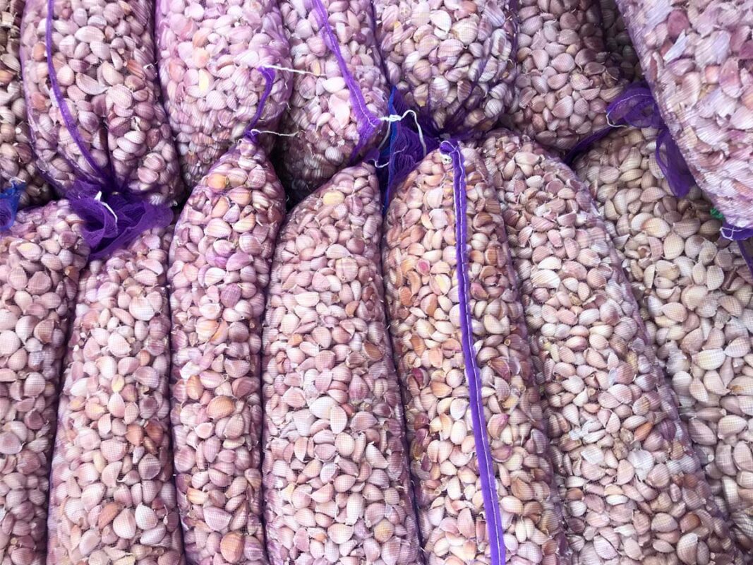 We have supplied with 2 types (White Garlic and Purple Garlic) and all garlic clove is packed into the mesh PP bag.