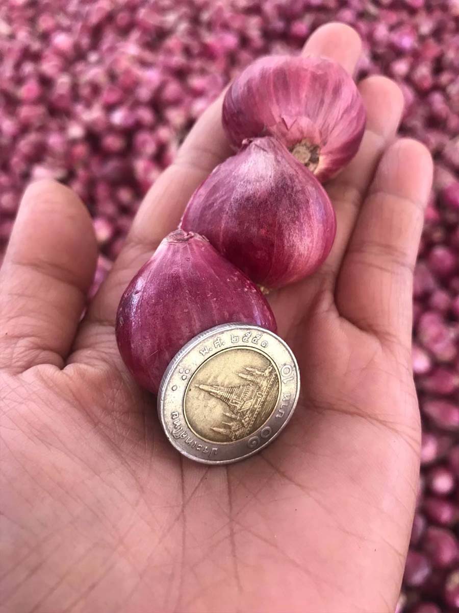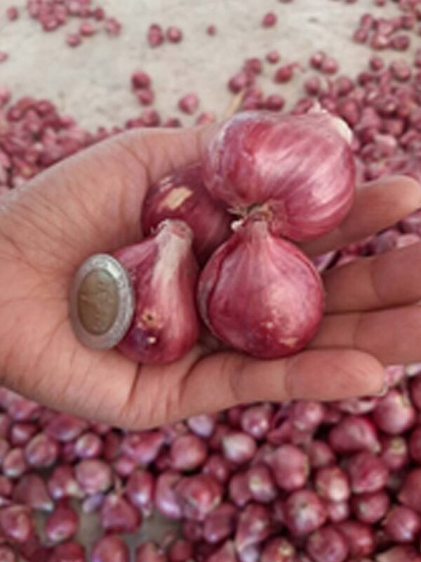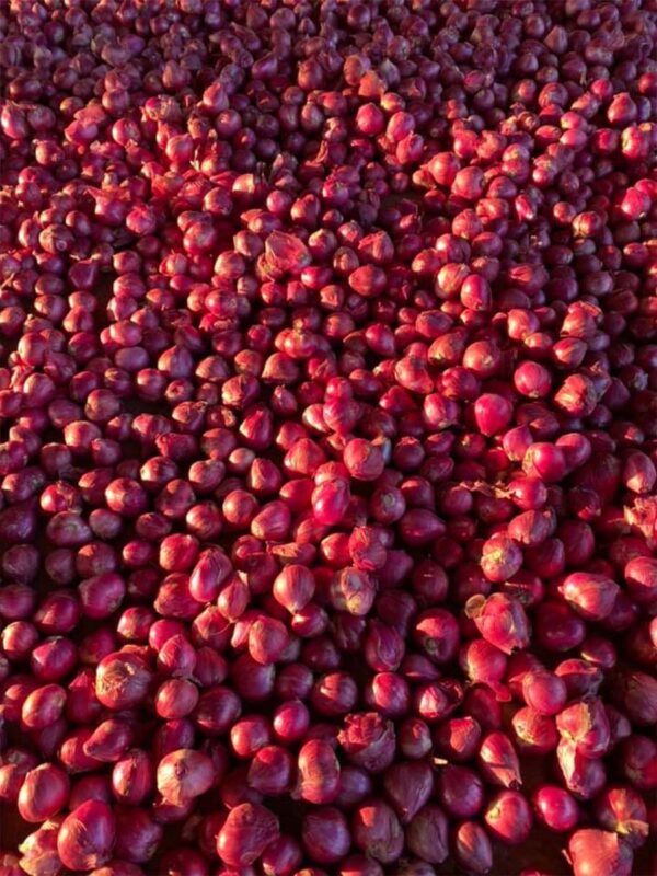 Trimmed Shallot – After harvest, the farmer is removed from the plantation farm and dried with 14 days aging, then blow all the dirty and foreign object from the shallot. All shallot is trimming all root and leaf part out from the shallot and separate the sizing by separator as customer required. After separated we have also quality check all the shallot then is packed into the packaged