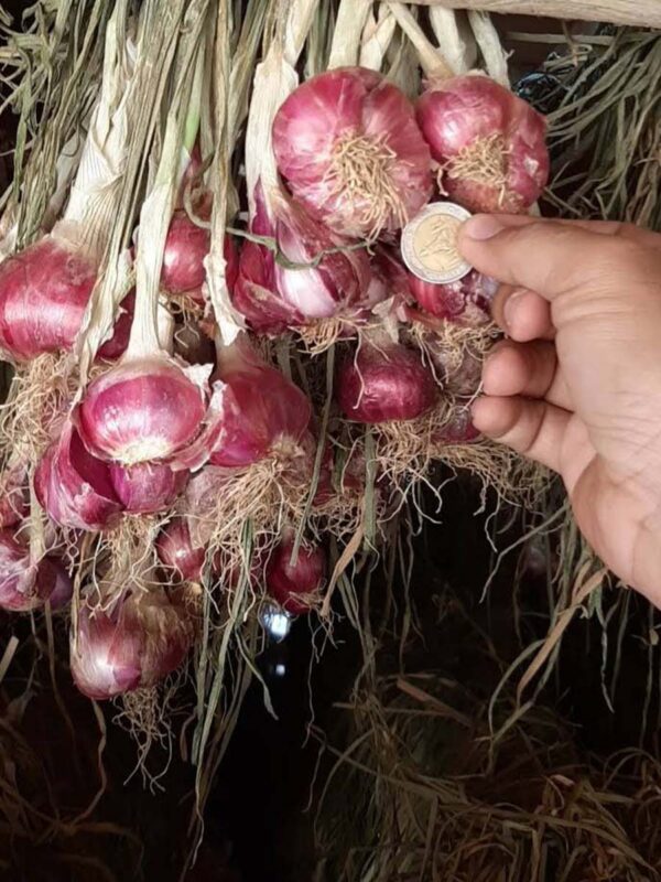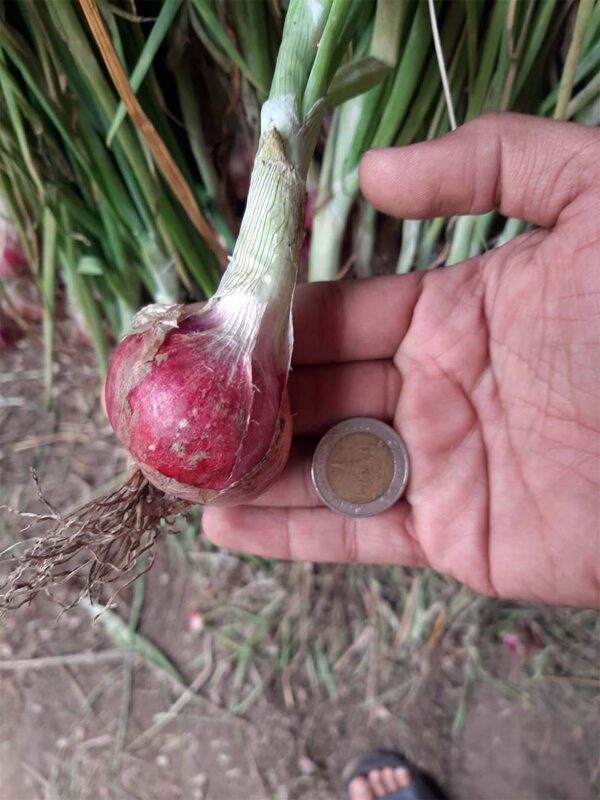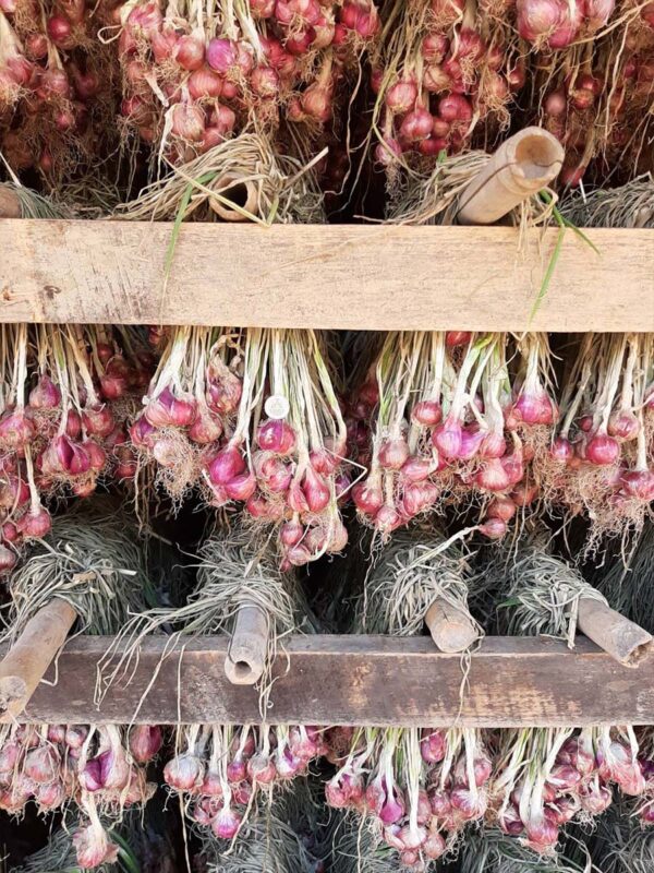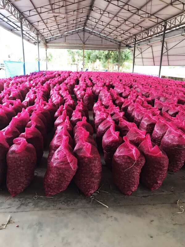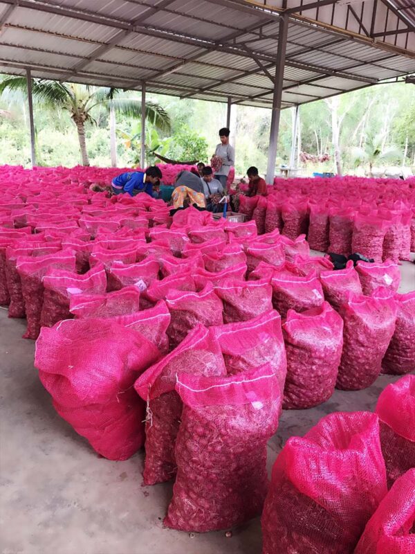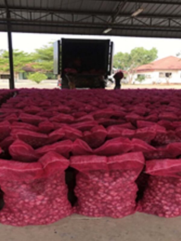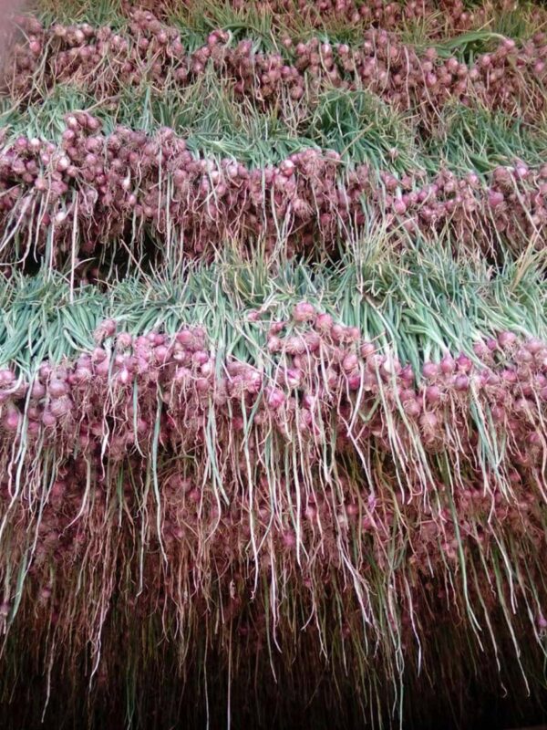 หอมมัด คือ หอมที่ผ่านการแขวนตาก 14 วัน นำลงมาคัดแยกขนาด ตามออเดอร์ตามขนาดที่ได้รับ ตัดรากตกแต่งใบรวบเป็นมัดสวยงาม